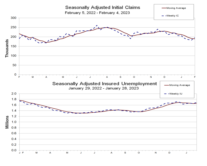 At the end of March, the seasonal adjustment parameters for 2023 will be revised. According to Conrad DeQuadros, senior economic adviser at Brean Capital, using the average seasonal components for the previous two years with the same calendar configuration as 2023 would result in claims of 210,000 in the most recent week and a four-week average of 200,000.